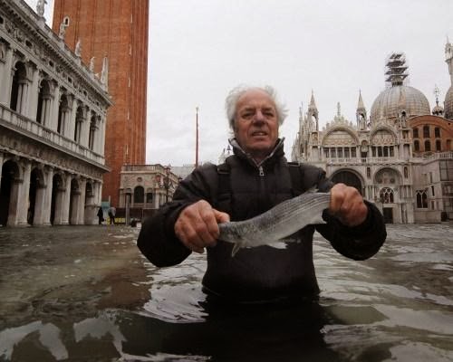 2009年11月,一場嚴重的洪澇使得威尼斯水位達到了131釐米,當地一名男子站在聖馬可廣場上炫耀著他在廣場上徒手抓來的石斑魚。威尼斯已經下沉了很久,但海平面上升將情況變得更糟。近些年洪澇頻繁,這使得很多人懷疑威尼斯到底還能在水面上呆多久?