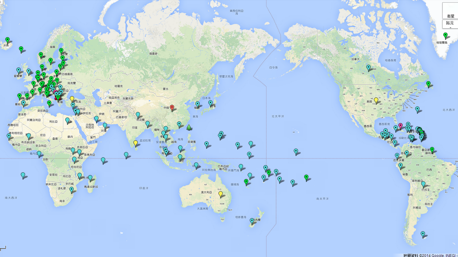 另外網路上有貼心的網友將 所有持台灣護照前往之免簽證/電子簽證的國家 結合googleMap做詳細的整理: